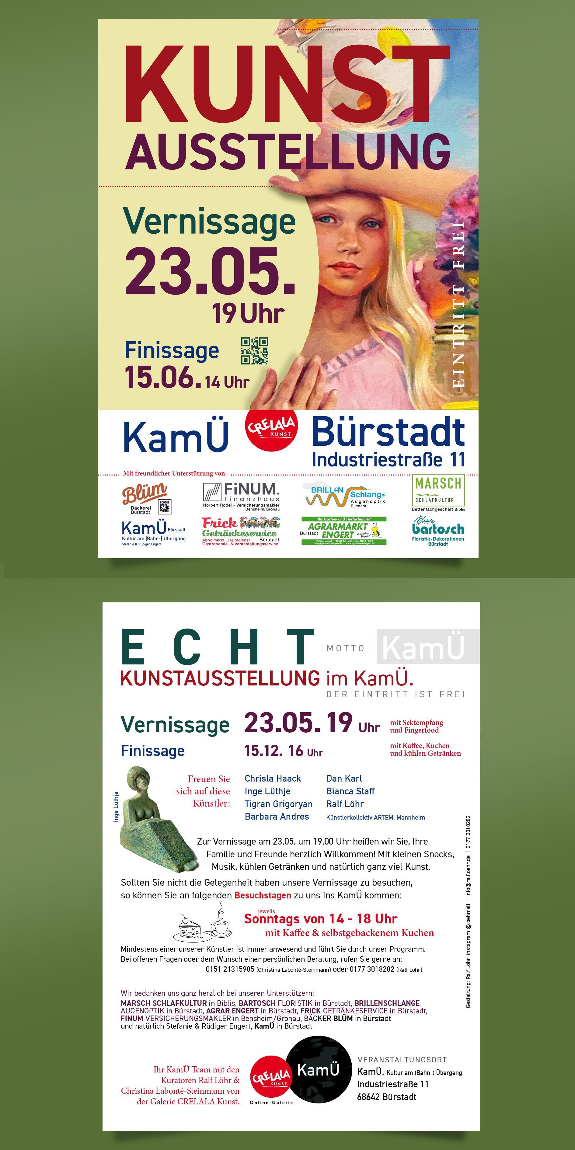Die Ausstellung ist kuratiert von Christina Labonté-Steinmann (CRELALA Kunst) und Ralf Löhr, wir freuen uns auf Ihren Besuch.