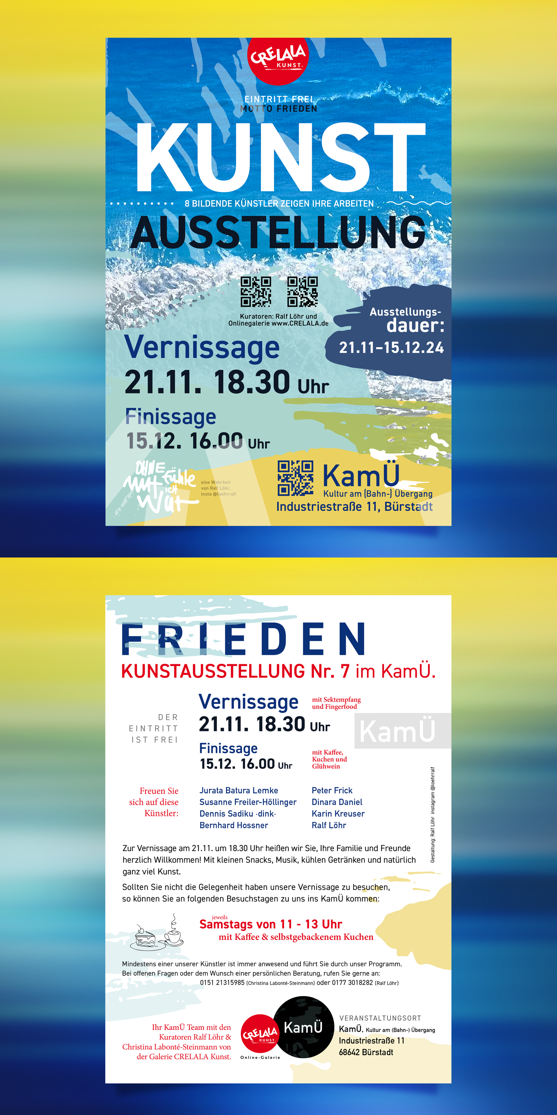 Die Ausstellung ist kuratiert von Christina Labonté-Steinmann (CRELALA Kunst) und Ralf Löhr, wir freuen uns auf Ihren Besuch.